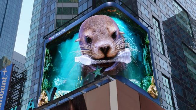 LG전자는 미국 뉴욕 타임스스퀘어 전광판에서 `바다사자`를 주제로 한 세 번째 `LG와 함께하는 위기 동물 보호 캠페인` 영상을 공개했다.