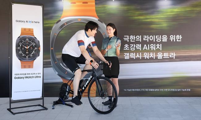 삼성전자가 트렉 바이시클과 함께 `2024 산티니 충주 그란폰도` 사이클 대회에서 사이클 운동에 최적화된 `갤럭시 워치 울트라` 체험 행사를 펼쳤다