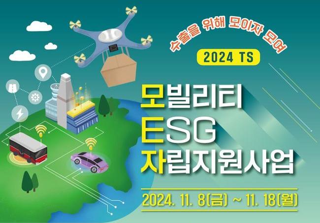 TS, 국내 모빌리티 기업의 ESG 대응과 수출금융 맞춤형 지원사업 시작 - 한국교통안전공단, 국내 모빌리티 중소기업에 ESG 및 수출 지원…8개사 대상 원스톱 서비스 - 11월 18일까지 중소기업 모집…최대 1,500만 원 지원금과 전문가 컨설팅 제공 - ESG 역량 강화와 해외시장 개척을 위한 다양한 지원 프로그램 운영