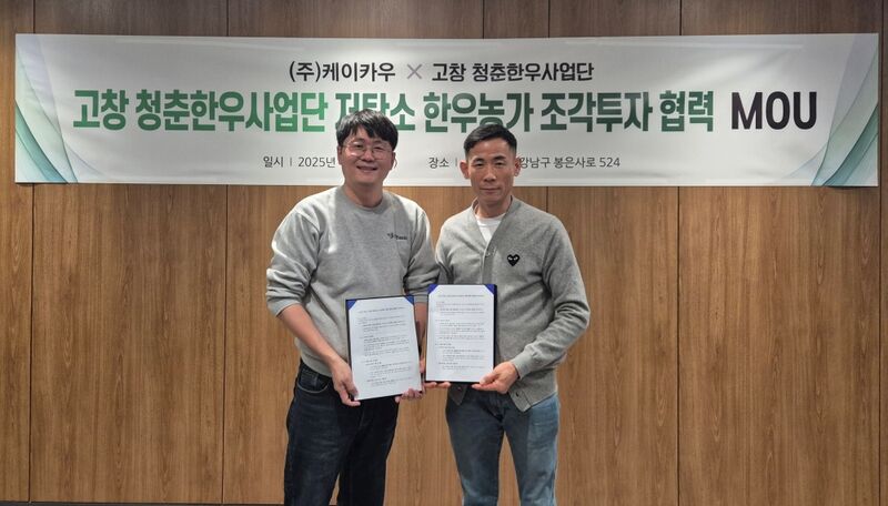 케이카우는 투자자 모집과 플랫폼 운영, 배당 구조 설계 등 사업 전반을 담당하며, 고창 청춘한우사업단은 농가 발굴과 사육 정보 제공 등 현장 지원 역할을 맡는다.