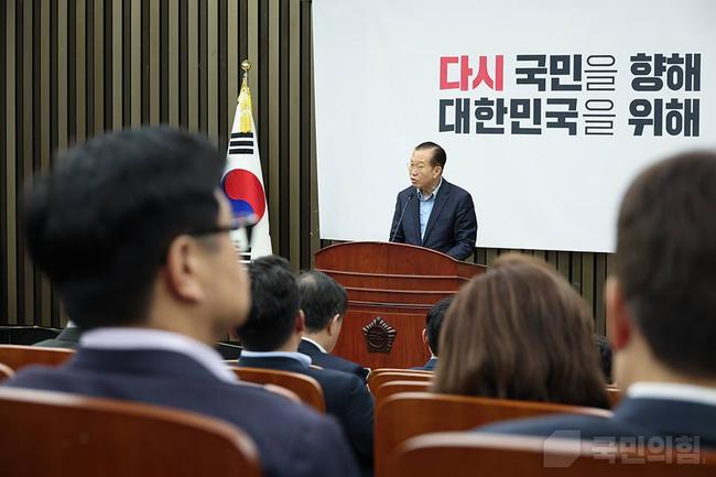 6일 오후 권영세 비상대책위원장이 서울 여의도 국회 본청에서 열린 의원총회에서 발언하고 있다.