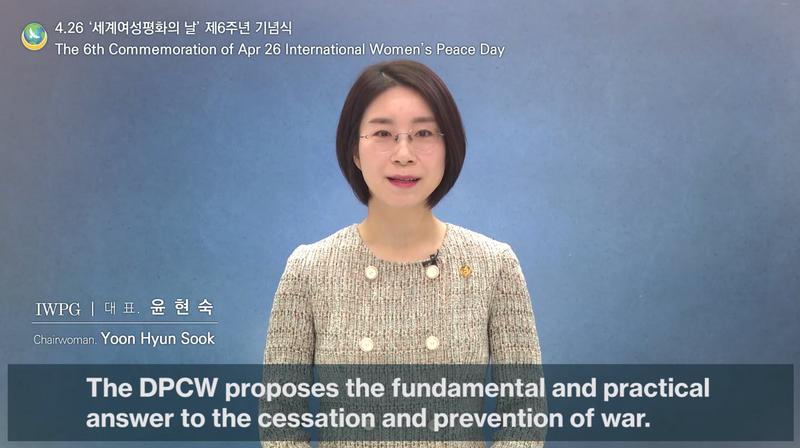 윤현숙 IWPG 대표는 기념사를 통해 “우리는 말로만 하는 평화가 아닌 진정한 평화가 필요하다”며 “여성, 평화, 안보에 관한 유엔 안보리 1325 결의안에서 말하듯 여성은 평화 실현의 주체가 돼야 하고 전쟁과 분쟁으로부터 보호받아야 한다”고 강조했다.
