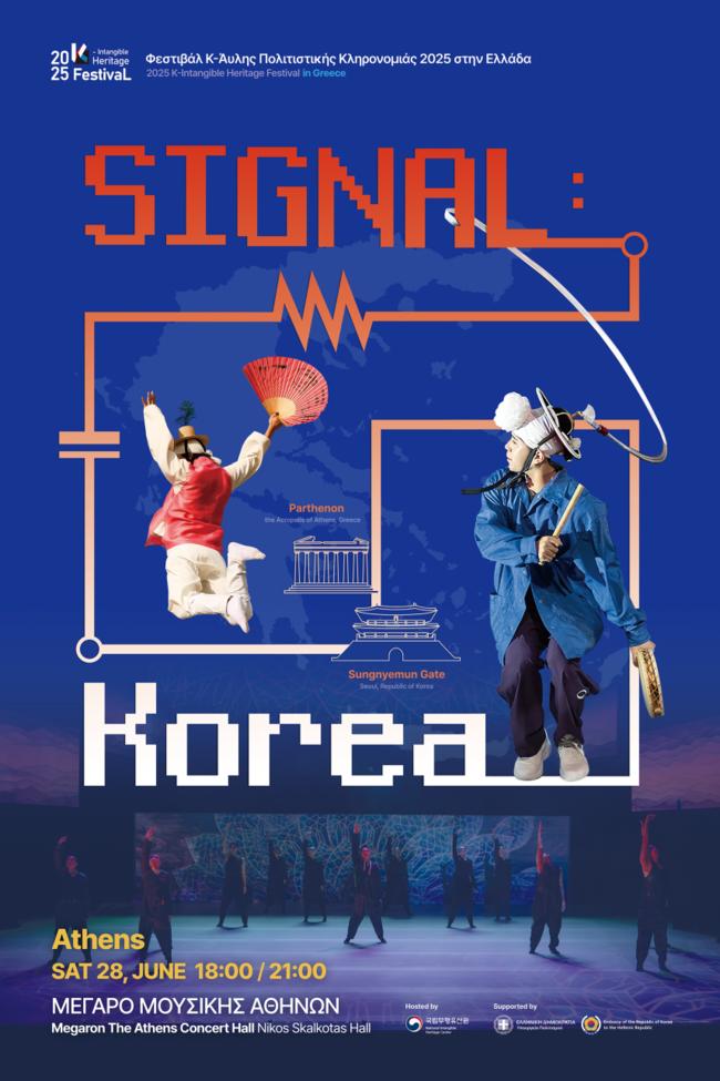 고대 문명의 심장 그리스에서 펼쳐지는 K-무형유산 대향연… ‘10분 만에 전석 매진’ - 28일 아테네 메가론홀서 <시그널 KOREA> 공연… 농악·탈춤 등 현대적 재해석 - 크레타 스트릿 아트 페스티벌에서도 사물놀이·태평무 선보여 - 국립무형유산원 “그리스에서 한류의 새로운 동력 기대”