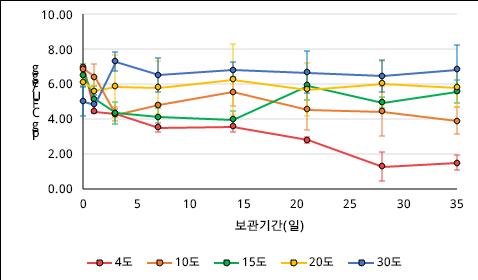 온도에 따른 달걀 표면의 살모넬라 생육 변화 (농촌진흥청)