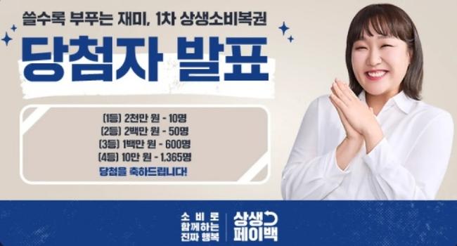 당첨 결과는 ‘상생페이백’ 누리집(상생페이백.kr)에서 확인할 수 있으며, 개별 알림톡을 통해서도 통보된다. 당첨금은 오는 7일 디지털온누리상품권 형태로 순차 지급된다.