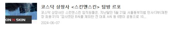 "6월 14일의 <스킨앤스킨>! 우리 탐방기사 후 갑작스런 상한가 이유! 심층분석!!"
