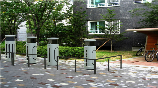 통저우 신도시에 설치될 스마트 투입구 조감도이다.엔백 북경 법인 정영훈 총경리는 “이는 한국의 생활폐기물 집하 시스템이 최첨단 기술이라는 것을 인정받은 것이며, 해외 신도시에 적용되는 것은 이번이 최초”라고 말했다.