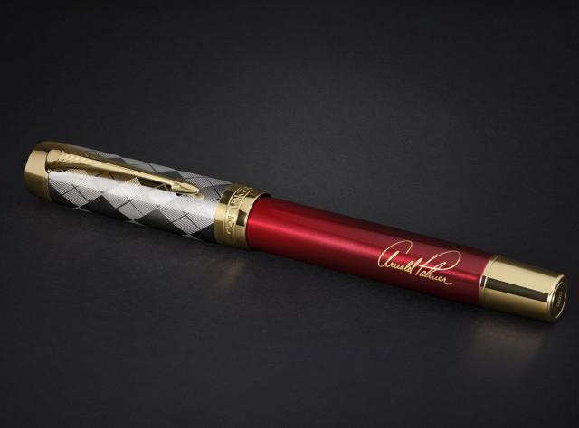 ‘아놀드 파머 시그니처 리미티드 에디션’은 아놀드 파머의 시그니처 컬러 중 하나인 레드 컬러의 그라데이션 바디에 골드 컬러의 시그니처 사인이 정교하게 각인됐다. 또한 시그니처 우산 로고가 새겨진 캡과 로듐 코팅 처리된 18K 골드 펜촉에는 아놀드 파머의 상징적인 체크무늬가 적용돼 고급스러운 분위기와 안정적인 필기 경험을 동시에 선사한다.
