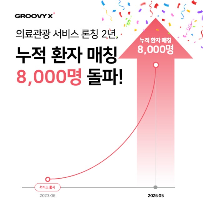 중국통 의료관광 서비스 스타트업 ‘그루비엑스’(GroovyX, 대표 권규범)가 서비스 출시 이후 병원과 의료관광객 간 누적 매칭 8,000건을 돌파했다고 10일 밝혔다. 의료관광 산업에서 2년 만에 이룬 성과로는 이례적인 기록이다.