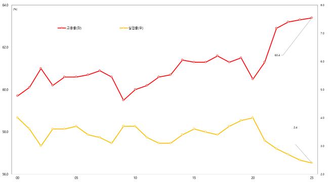 15세 이상 고용률ㆍ실업률(원계열, 매년 7월)