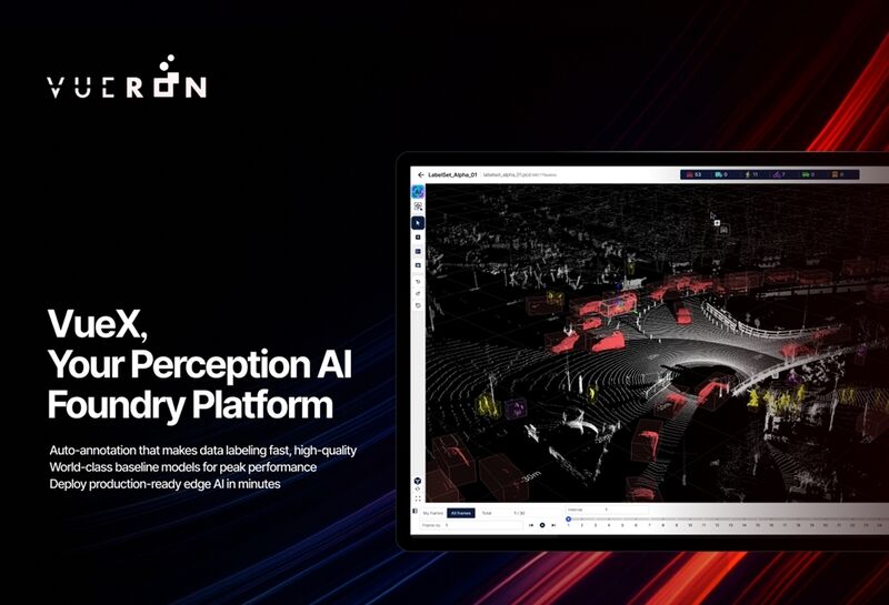 VueX는 LiDAR 인지 AI 분야에 파운더리(Foundry) 개념을 적용한 클라우드 기반 플랫폼으로, 데이터 수집부터 라벨링, 모델 학습, 배포까지 AI 개발 전 과정을 하나의 플랫폼에서 지원한다. 거대(Large-Scale) AI를 기반으로 LiDAR 데이터에 대한 자동 라벨링 기능도 제공해, 고객이 보유한 대용량 LiDAR 데이터를 수 분에서 수 시간 이내에 자동으로 처리할 수 있다.